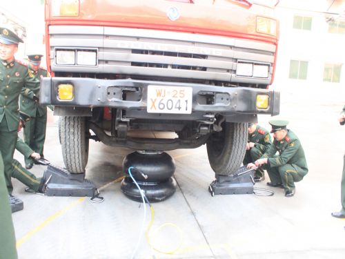 我公司技術人員在蘭州市消防特勤大隊為消防官兵現場顯示、培訓我公司所供氣墊。